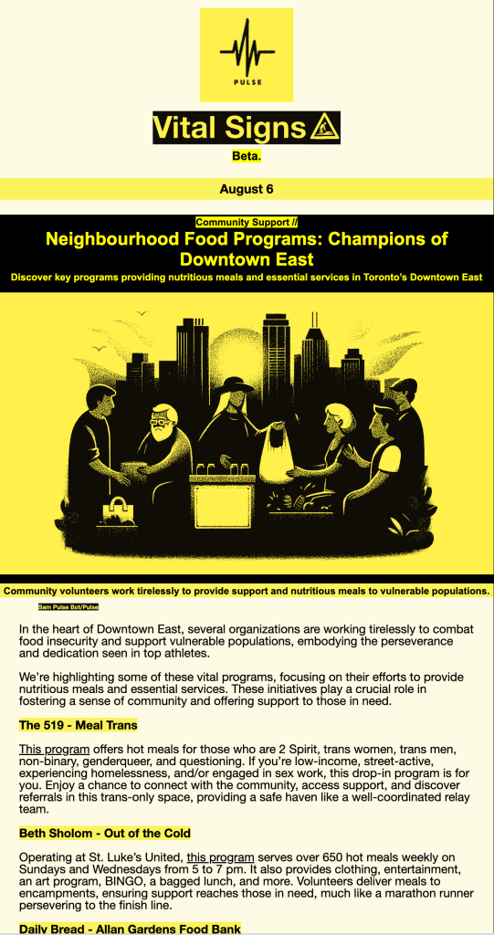 Pulse is a hyper-local, multi-platform publication for Toronto’s Downtown East that uncovers stories and the resources available to help residents to connect, learn, and thrive.